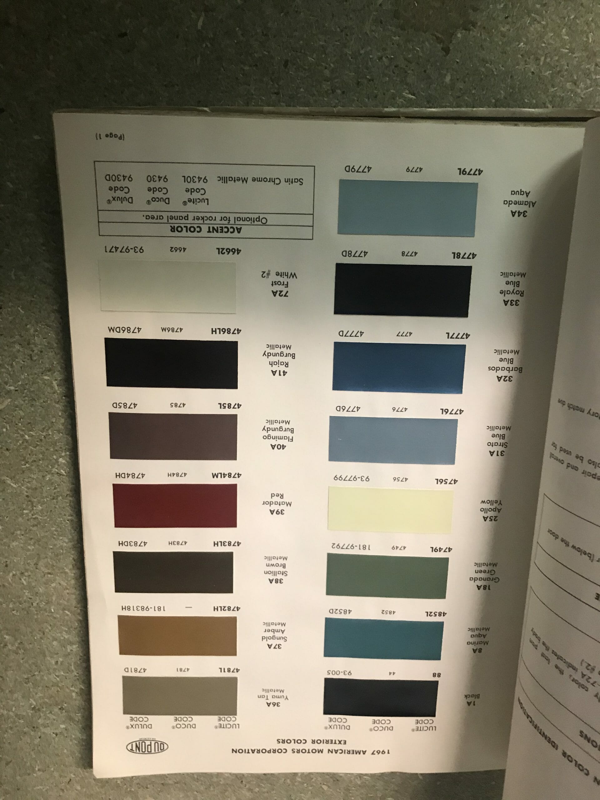 Orkkis värikatalooki jossa interior ja exterior värikoodeja