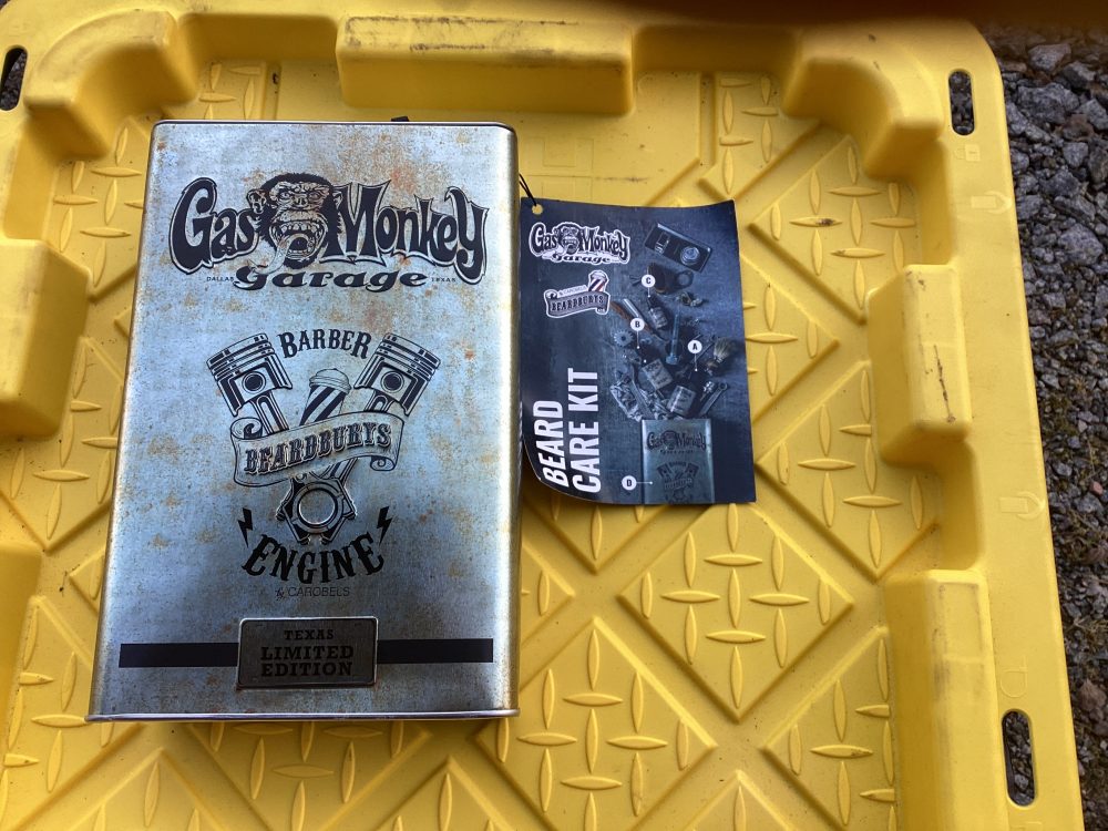 Miehille suunnattu parranhoito setti Peltipurkki toimii saastopossuna