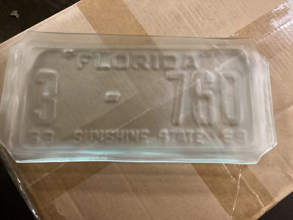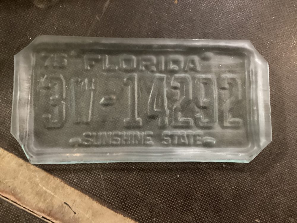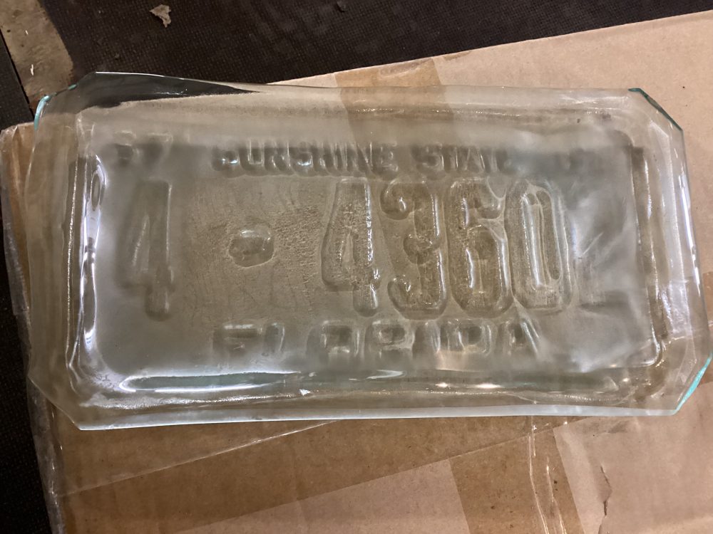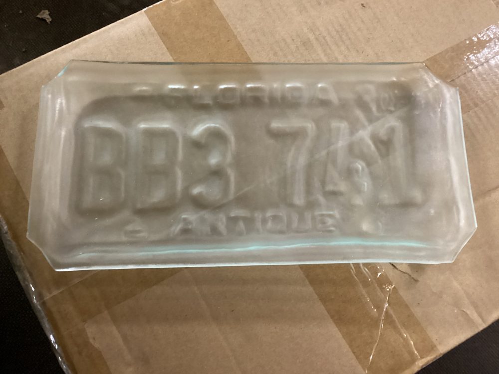 Hand made in Florida Tampa. Nama ostettu suoraan tekijalta. Lautaset tehty rekisterikilpea muottina kayttaen kierratyslasista. Kpl hinta