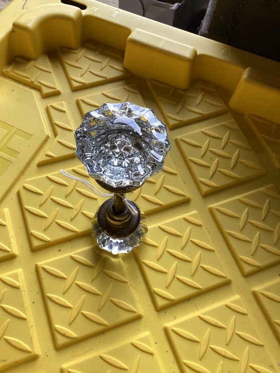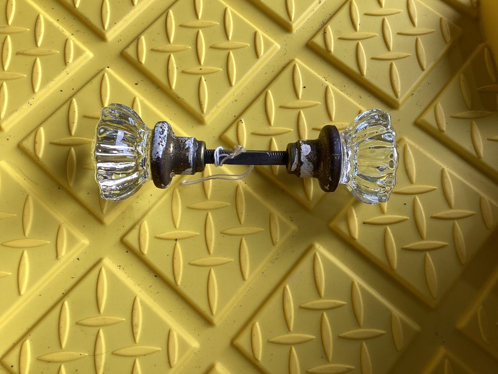 Lähes 100v vanha välioven kahva kristalli nupeilla. Made in USA