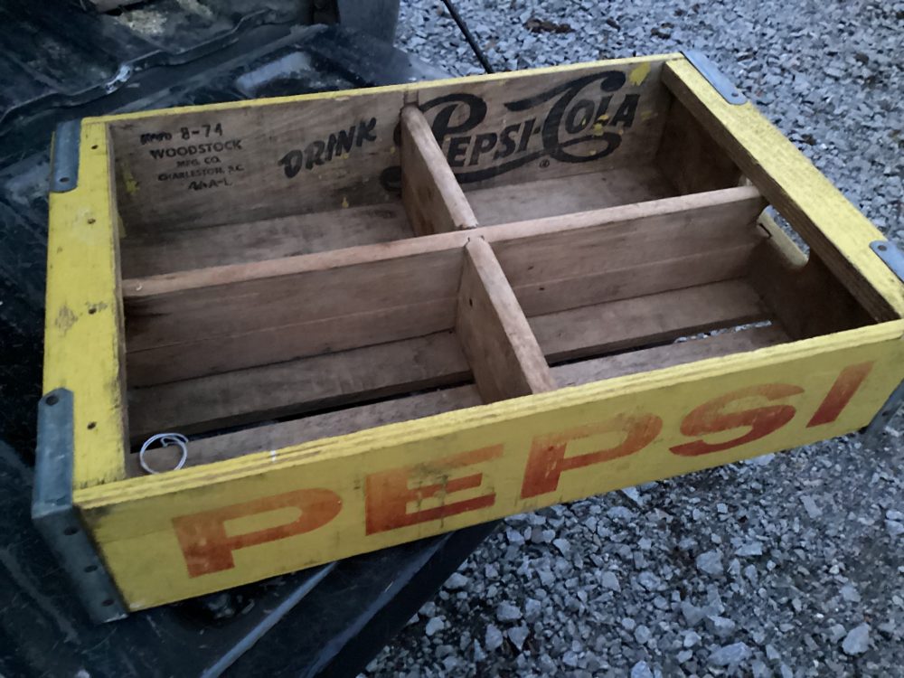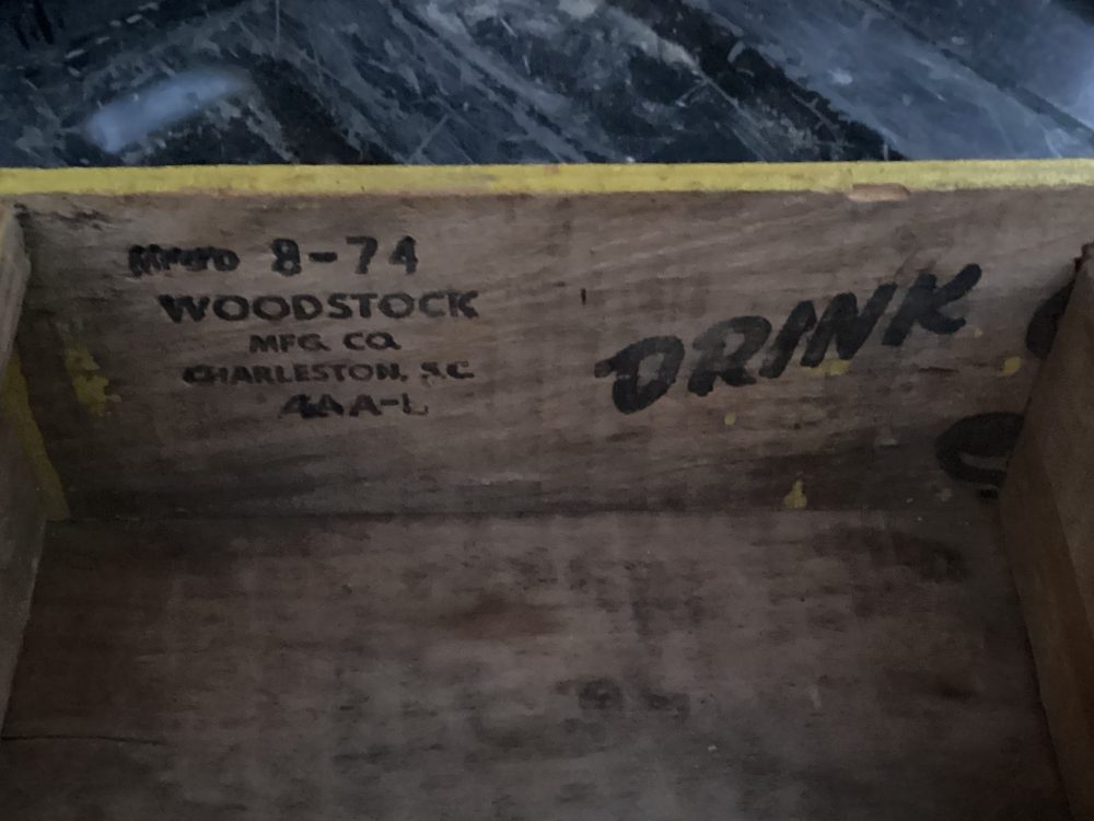 Puinen pullokori Woodstockin leimalla
